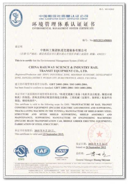 详细摘要: 环境管理体系认证证书