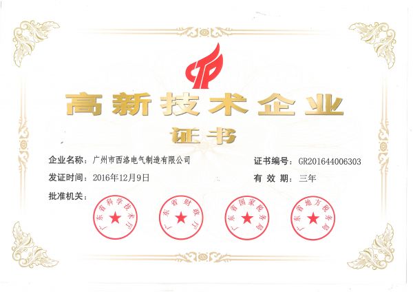高新技术企业证书