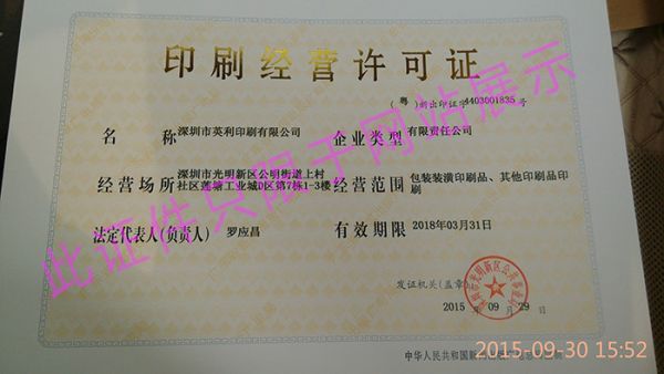 深圳市英利印刷有限公司成立于2004年,位于深圳市光明新区公明上村河堤路6号,厂房面积7500多平方米,员工200多名,是深圳印刷包装行业的知名企业。公司承接各种大型纸货架、纸展示架、纸陈列架、纸陈列箱、纸堆头、纸促销架、纸促销台、PDQ展示盒;以及各类电视机彩箱/家电包装箱/医疗包装箱/饮料包装箱等纸品印刷。      英利印刷拥有全新德国高宝5色1600*1210超全开印刷机+上光,德国高宝1300五色印刷机,日本全开三菱印刷机,罗兰700对开印刷机、全新戒样机,数码打印机,蓝纸机,CTP出版机,进口晒版机2台、切纸机2台、上光机2台、UV机1台、过胶机2台、自动裱纸机1台、半自动裱纸机2台,1.6米大自动啤机1台、1.8半自动啤机、手动啤机8台,自动粘盒机2台,打钉机6台等全新生产设备,工业区并配有见坑机和纸板机等瓦楞生产线。...... [ 查看详情 ]