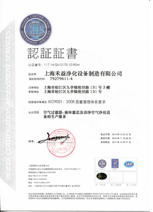 上海禾益净化设备制造有限公司ISO9001认证证书